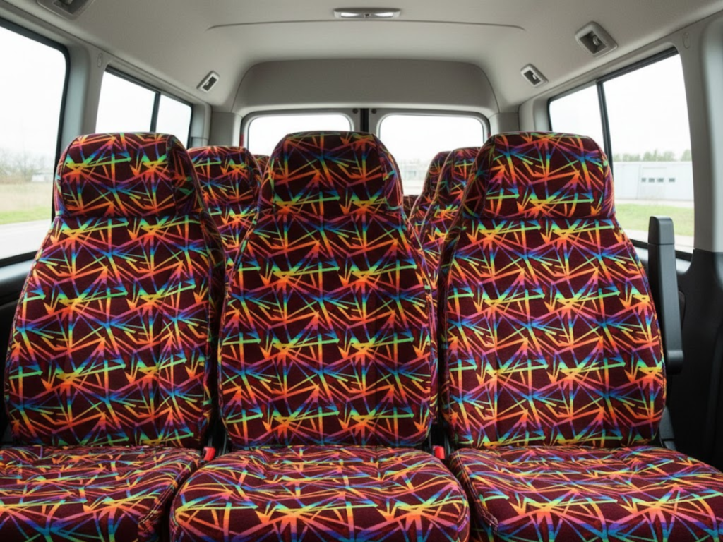 Our fabrics are specifically designed for buses, vans, coaches, and other commercial passenger vehicles requiring durable seating materials.